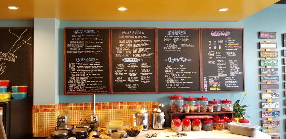 “ They were super busy; but since they are used to it, the service was still impeccable. They were very welcoming & helped us all to pick the flavors that we wanted. I love ice cream, so everything about this place was amazing to me. The inside is so cute. Has seating for Intimate groups as well as bigger groups. They also have patio seating as well. They have music playing over the speakers, but low enough to where you could still enjoy & have conversations. I will definitely be back! ”